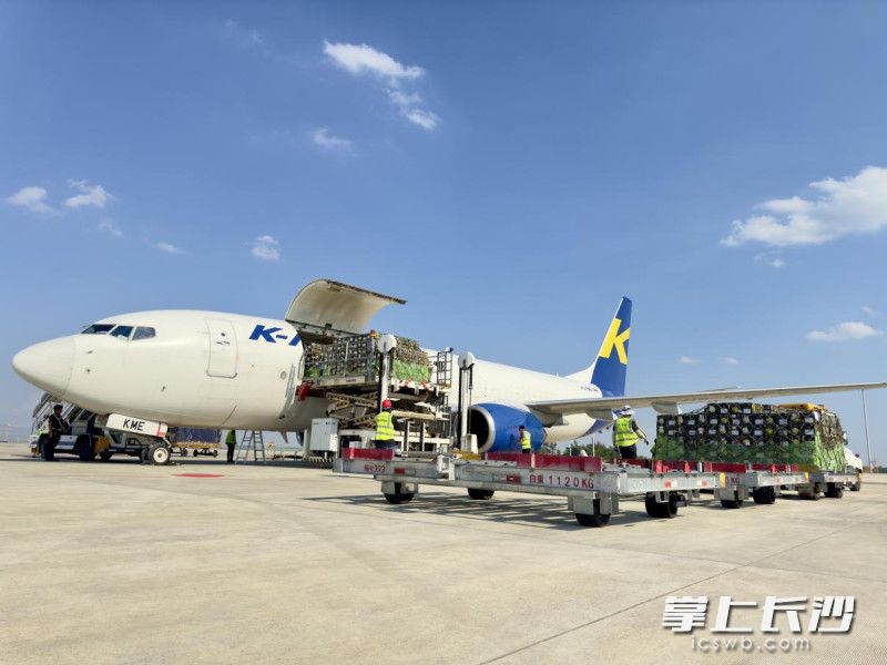 8月8日下午,一架滿載20噸進口水果的波音737全貨機平穩(wěn)降落在長沙黃花國際機場。 長沙晚報通訊員 崔俊 供圖 【作者:聶映榮 通訊員 洪琳 張舒熠 崔俊 孟祥琳】 【編輯:易雋】