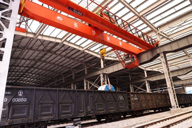 長沙新港專用鐵路正在裝卸作業(yè)。 均為長沙晚報全媒體記者 王志偉 通訊員 金添毅 攝 2月4日,一列由婁底漣鋼生產(chǎn)的工業(yè)鋼材共80車經(jīng)鐵路運輸至長沙新港,從碼頭裝船發(fā)運至上海,當(dāng)天運量達到4500噸。2023年,長沙首條疏港專用鐵路在長沙新港正式通車運營,實現(xiàn)了港口鐵路與京廣線國鐵干線的無縫銜接,打通了長沙水鐵聯(lián)運“最后一公里”,多式聯(lián)運降低了企業(yè)運輸成本,深受市場歡迎。數(shù)據(jù)顯示,長沙新港專用鐵路運營至今,共到發(fā)車數(shù)超3.1萬車,貨物運量超186萬噸。